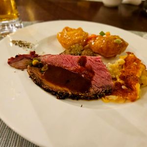 私はハム数種とチーズ、ムール貝や小エビのマリネなどをまずオードブルとして頂き、シェフが取り分けしていらっしゃるローストビーフを頂きました。ローストビーフ以外にもチキンやポーク、比較的しっかりした蟹もありました。
