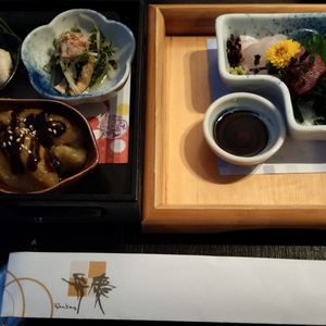 先付けのお刺身、湯葉、茄子のみそ和え、水菜のお浸しもとても美味しくあっという間に完食でした。
