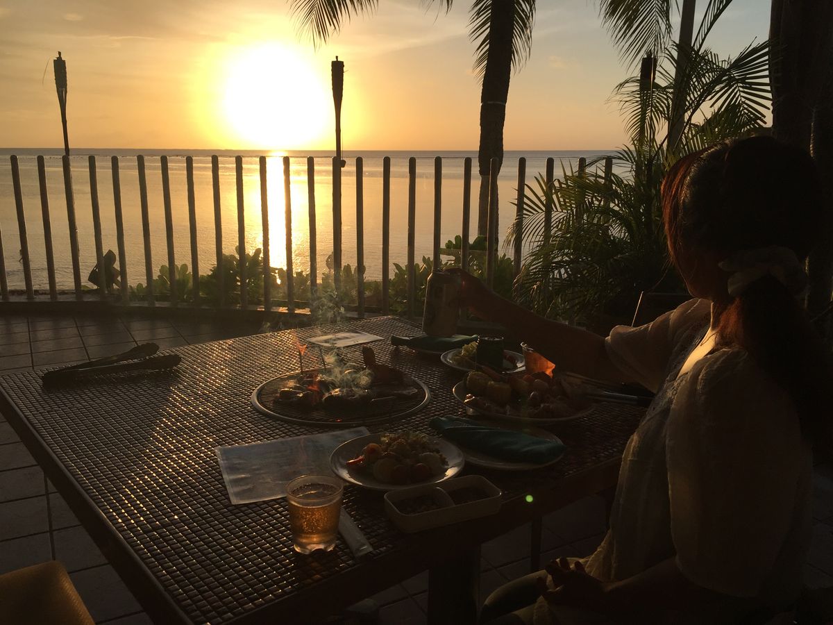 19:00予約だったので、サンセットを見ながらは食事できませんでしたが、海を見ながらの食事はなかなか普段出来ないのでいい体験できました。時期によっても違うと思いますが、18:30頃が、サンセット時間でした。また、グアムへ行くときは伺いたいと思います。