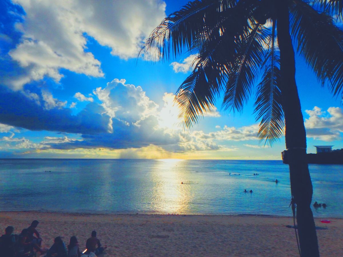 写真がまるで絵葉書の様に綺麗です。リフレッシュブルーの空とターコイズブルーの海とロマンティックオレンジのサンセットに時折見えるグリーンフラッシュ。真にグアムの彩です。