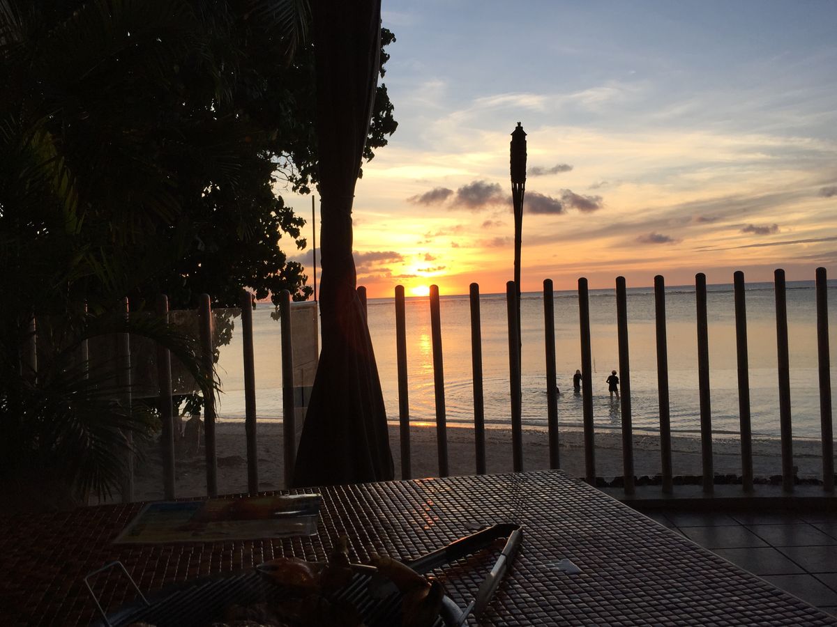 夕日が海に沈む様子を眺めながら食べるBBQは最高!!オマールエビも美味しかった!!
