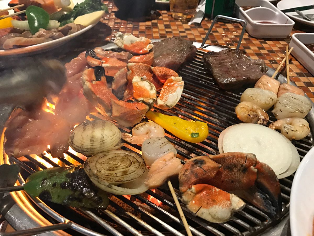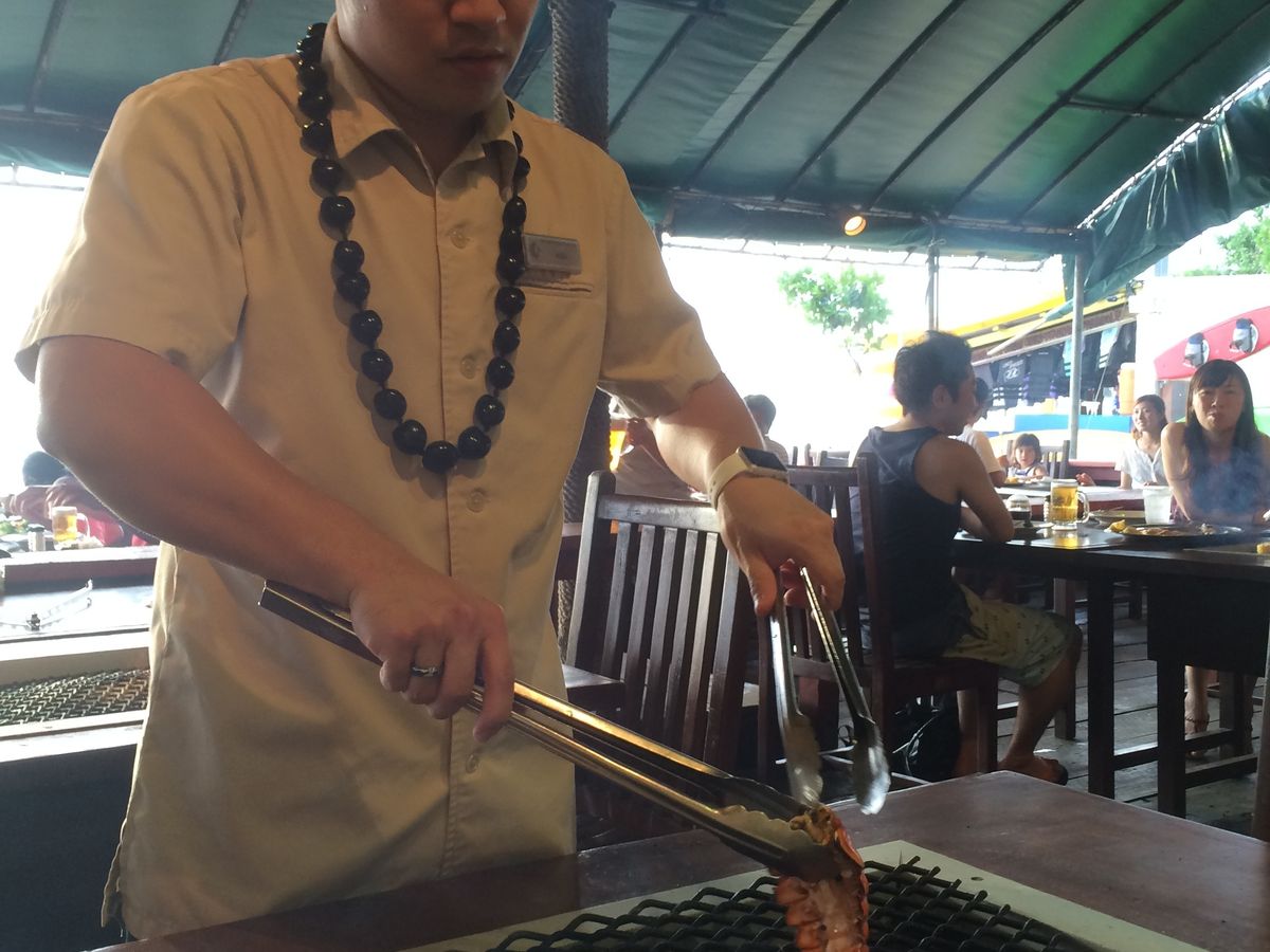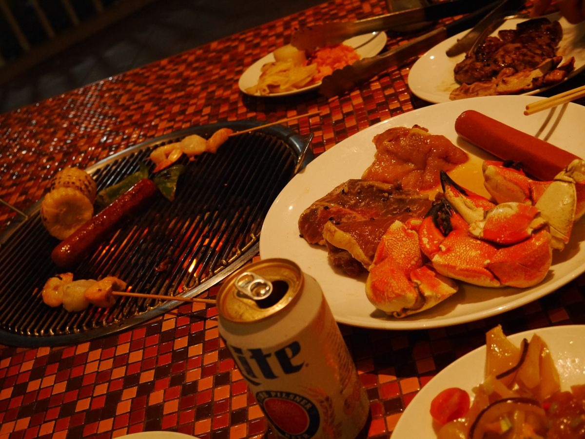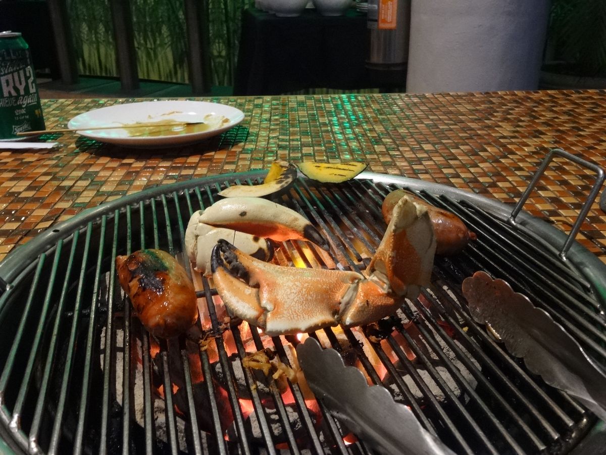 日本人だらけでバーベキューと同じブースなので煙が凄かったです。蟹は美味しいけどたくさん食べる人ならボリュームがちょっと足りないかも。