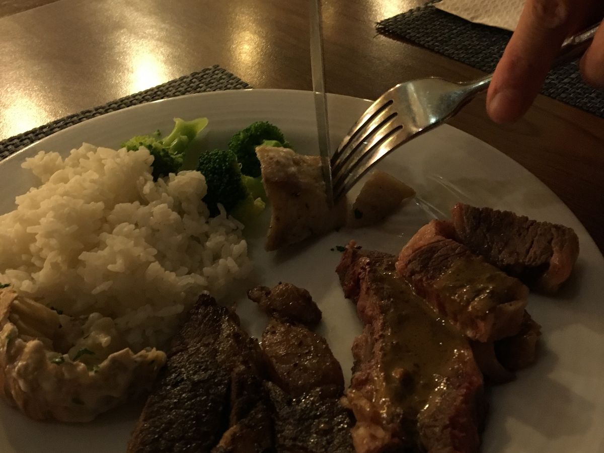 ショーは、迫力があり、とっても楽しめました!ただ、お料理は最初にお肉や魚介類がテーブルに全て置いてあり、お代わり自由ではなかったです。(量的には十分でしたが、自由に選べないです。)また、火力が途中で落ち、分厚いお肉がなかなか焼けず頼んでもなかなか追加の火がもらえず、バスの時間も迫り、最後は慌ただしくなってしまったのが残念でした。