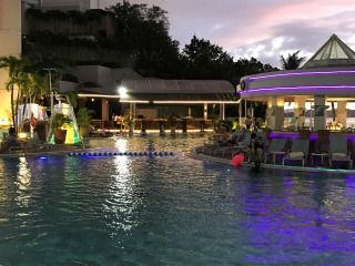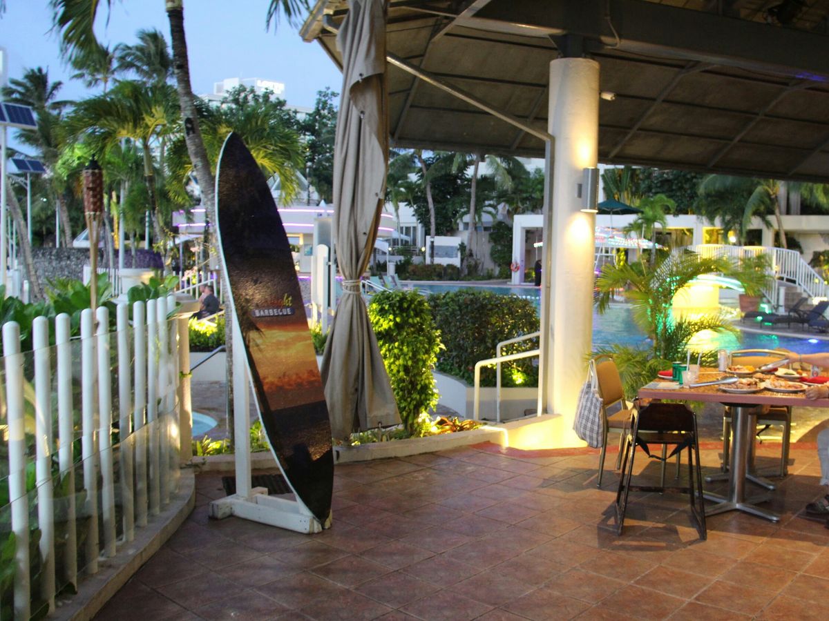 グアム到着の初日に参加させていただきました。お店の雰囲気は最高でした。ロケーション的に海辺でありプールサイドでもあるためプールのイルミネーションと海の静けさが何とも素晴らしい雰囲気を演出してくれます。