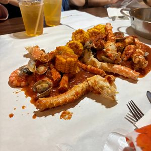 サラダや飲み物、サイドメニューは別途料金です。シーフードととうもろこし、じゃがいも、ライスのみしか出てきません。