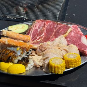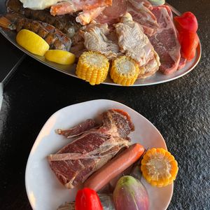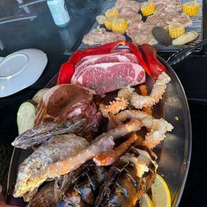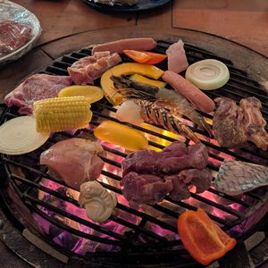 お肉だけでなく野菜や海鮮もあって美味しかったです。サラダバーも嬉しかったです、