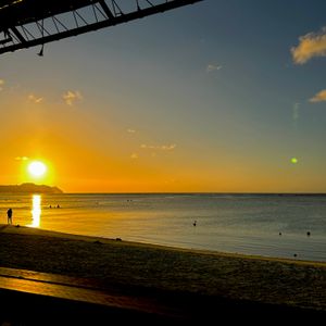 おかめちゃん 様 この度はご参加ありがとうございました。グアムのお天気は良い意味で変わりやすく、多少雨がふっても短い時間にザっとふってスグあがってしまうことがほとんどです。長い桟橋から見る夕陽の景色、とても異国情緒がありますよね^^