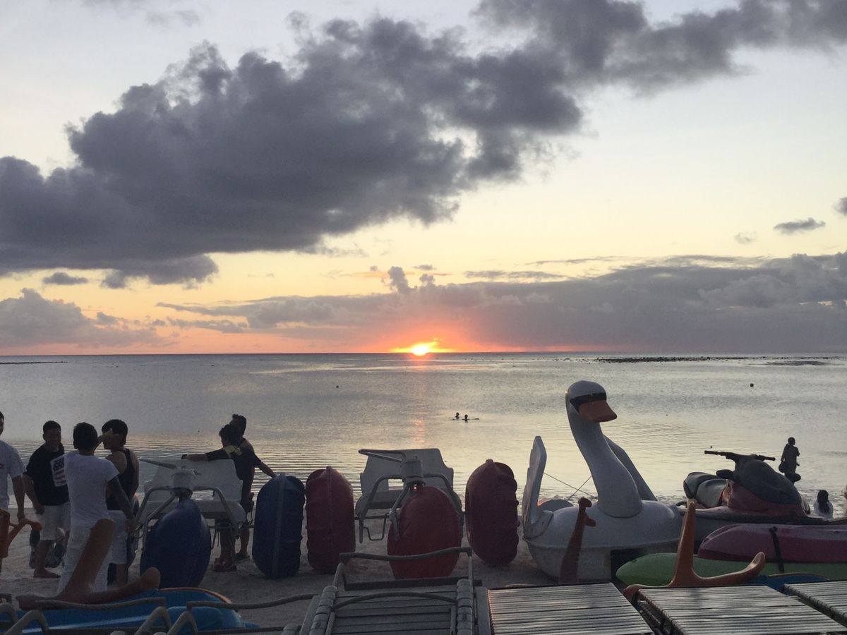 タモン湾に沈む夕陽はかなりの絶景でお薦めのアクティビティです。