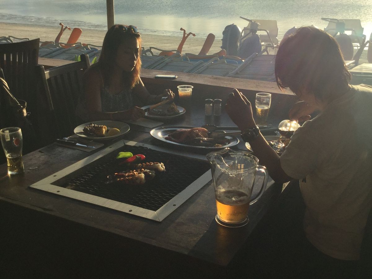 2人でしたがビーチ脇の席だったのでとても気持ちよく眺めも抜群でした。