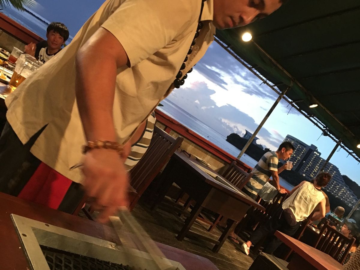 BBQの味はおいしかったし、サンセットもきれいでした。雲がかかっちゃったのが少し残念でしたが。肉やエビが大きくて、サラダがビュッフェスタイルだったのもよかった。ここからは不満な点。送迎ありプランのはずが、ピックアップ時間15分しても迎え来ず。宿泊していたのはアウトリガーの隣のリーフホテルだったので結局歩いて行きました。予約はちゃんと取れていて、ついてすぐにテーブルへ案内してくれて安心。食べ終わりかけに海の写真を撮りに行ったら、まだサラダと飲み物残ってたのにすべて片づけられた。おなか一杯だったからよかったけど、なんだかなーと思った。もうちょっと飲み物のんでゆっくりしようと思ったのに。会場ではベルトラらしき人と会うことはなく帰りも歩いて帰ってきました(近かったからいいんだけどね)。