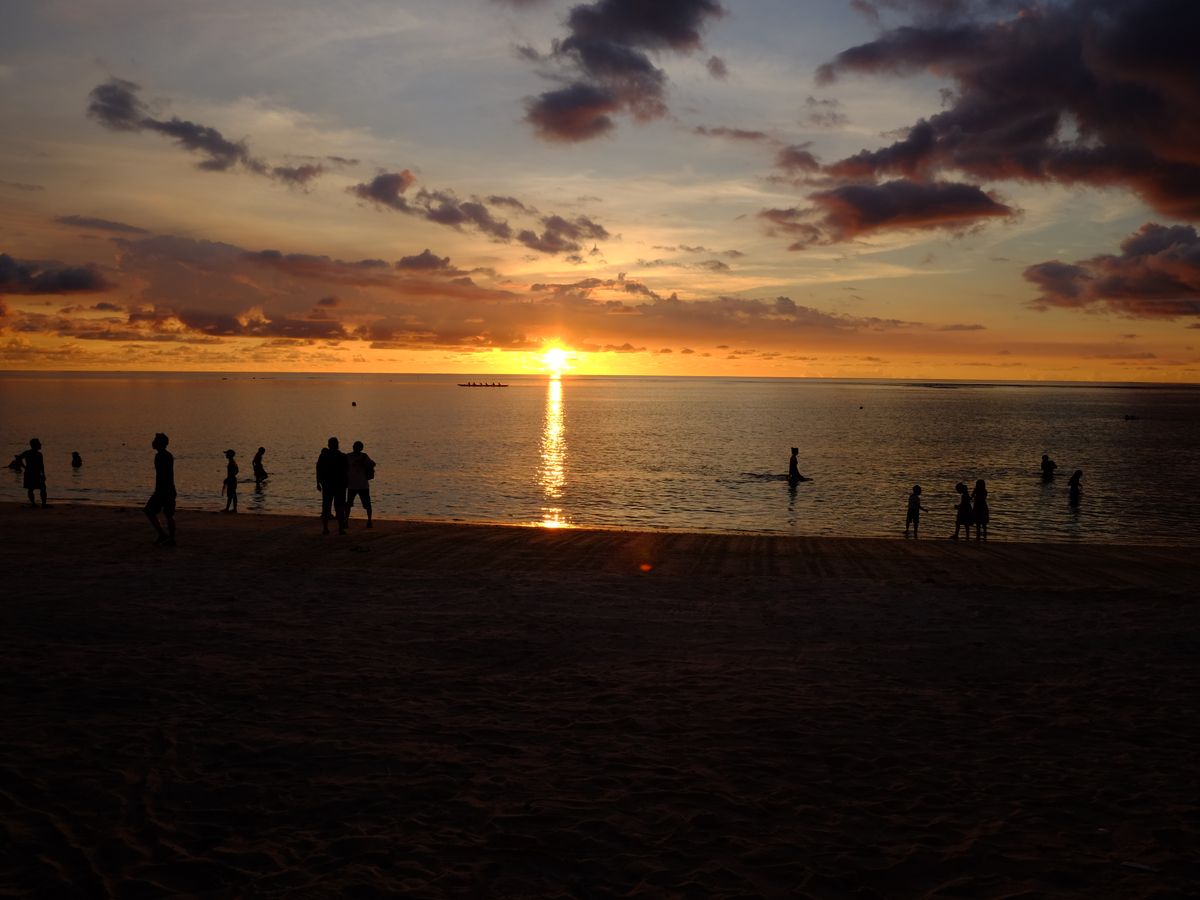 サンセットの時間はその月によりますが、現在は6時半すぎごろからです。BBQを焼いている途中で皆様ビーチで自撮りされてますよ。