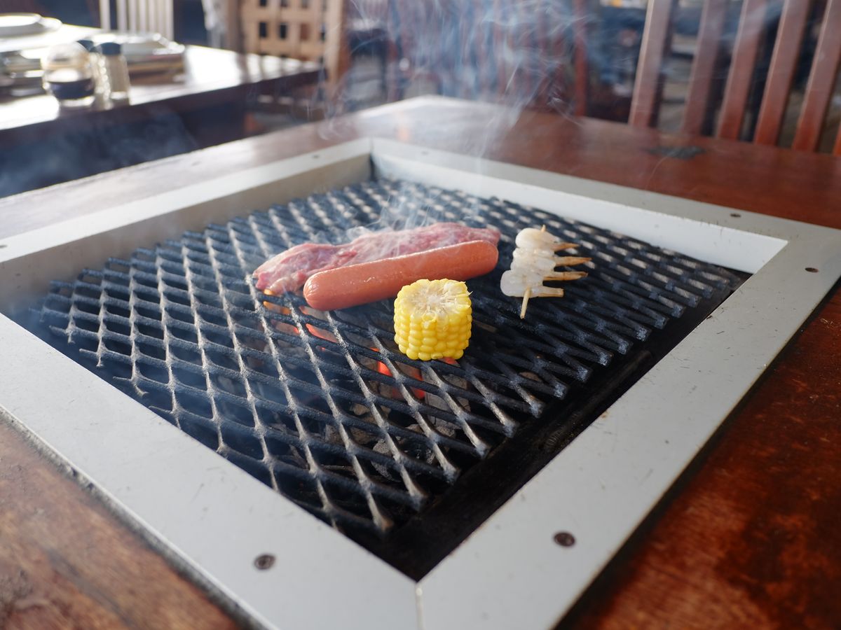 私の席前に網! 熱いし煙たいし汗だくだく爆笑。