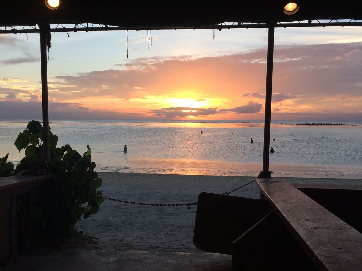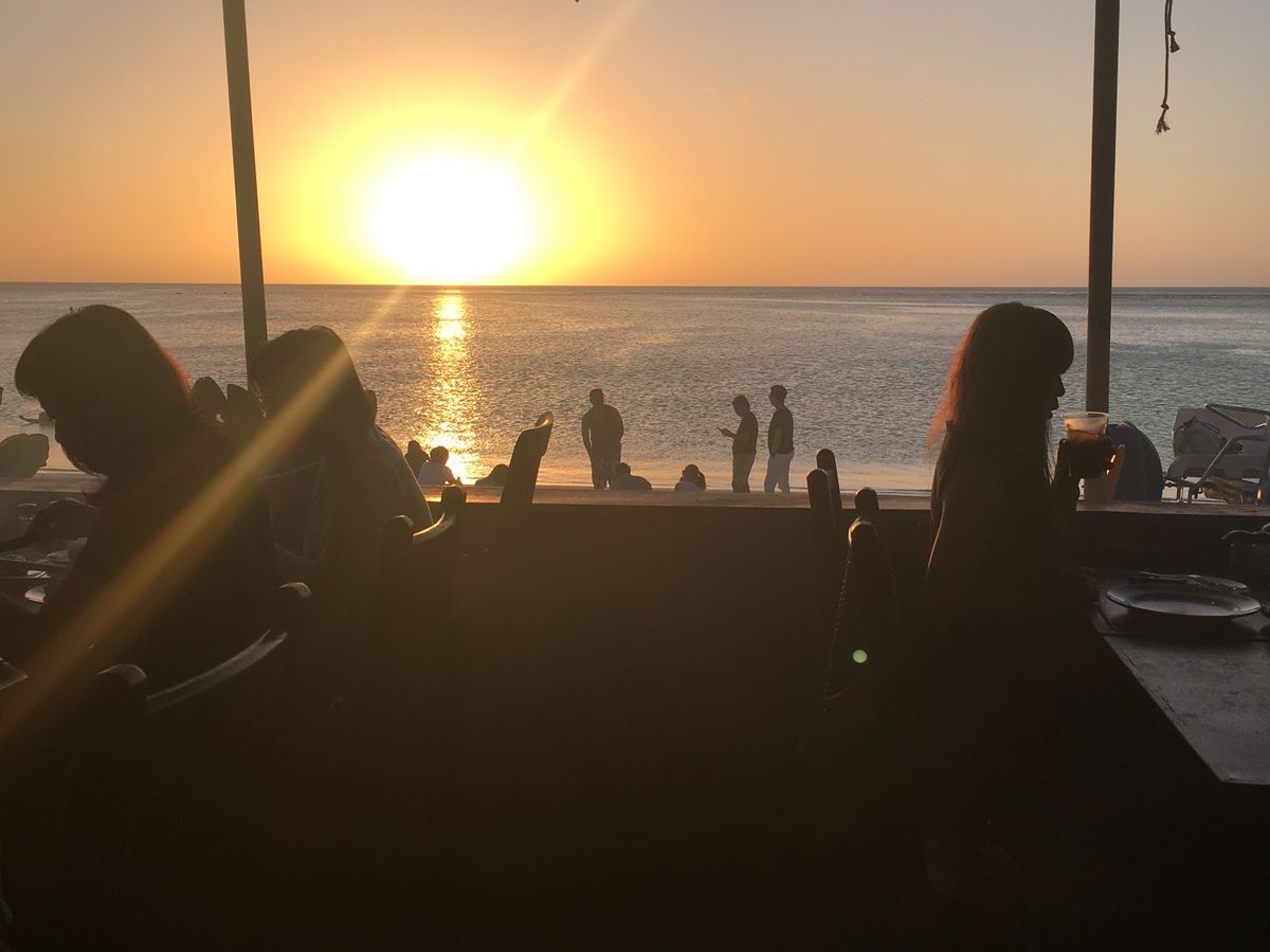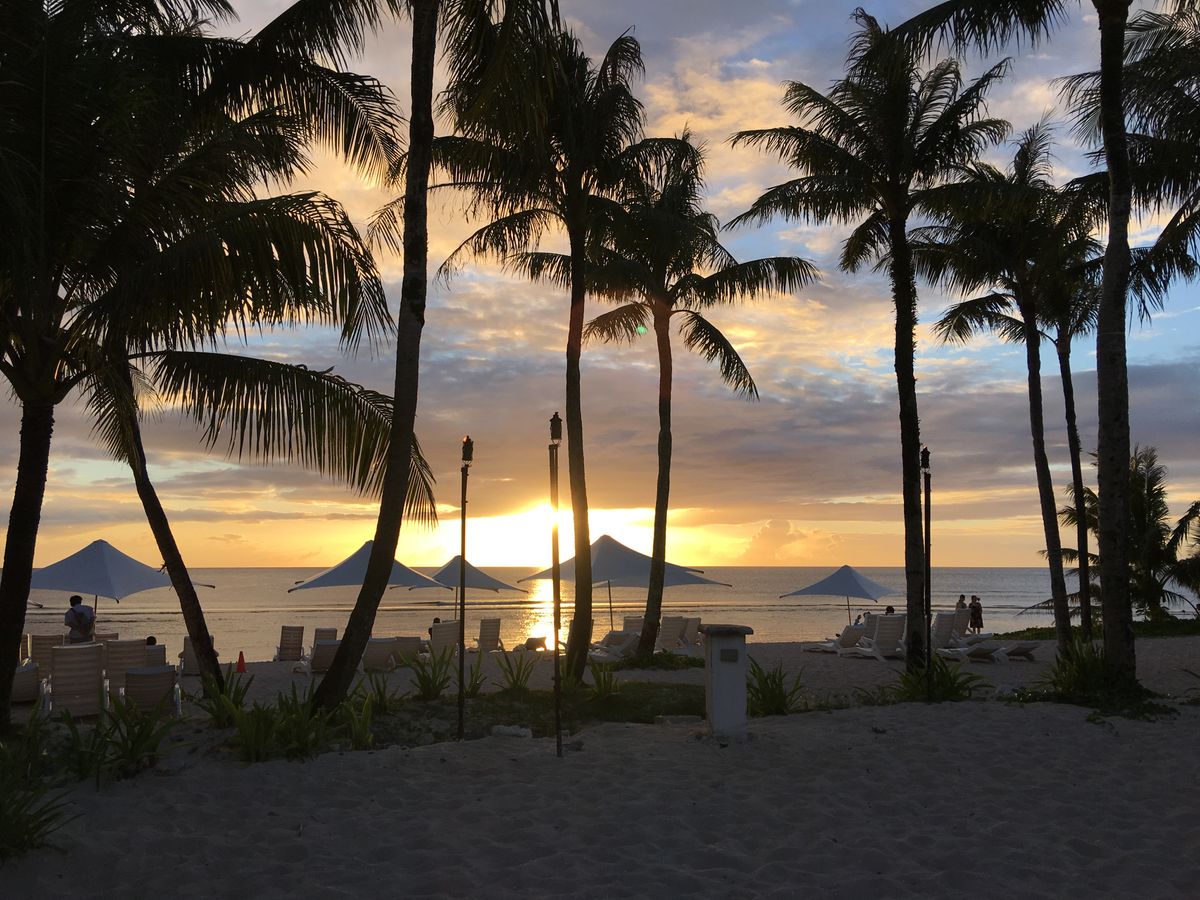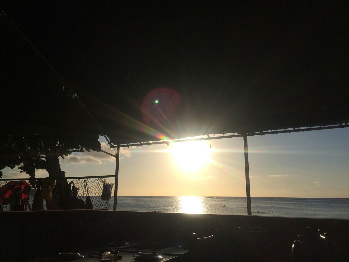 きれいな夕日ですね。次回またグアムにお越しの際は、手づかみで食べるシーフード“クラッキン・クラブ”ぜひトライしてくみてくださいね。