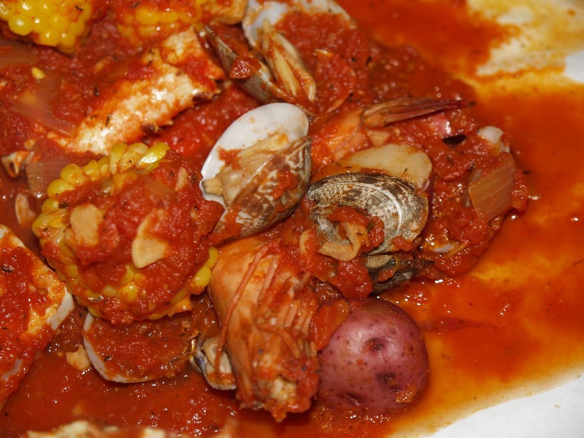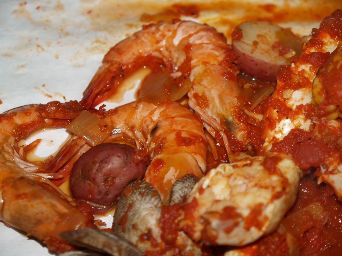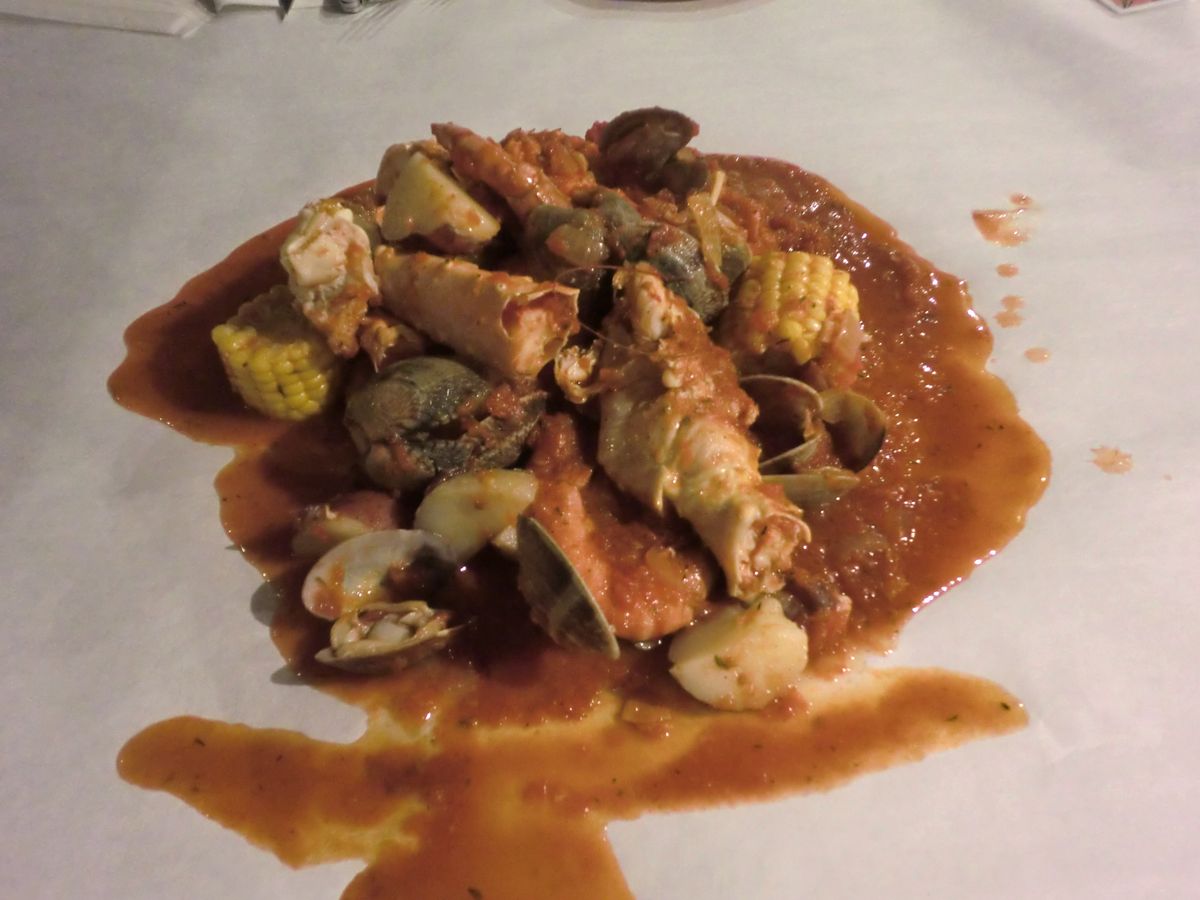 トマトベースの濃いスープで煮こまれた魚介は、柔らかくて味もしみてなかなか美味しい。