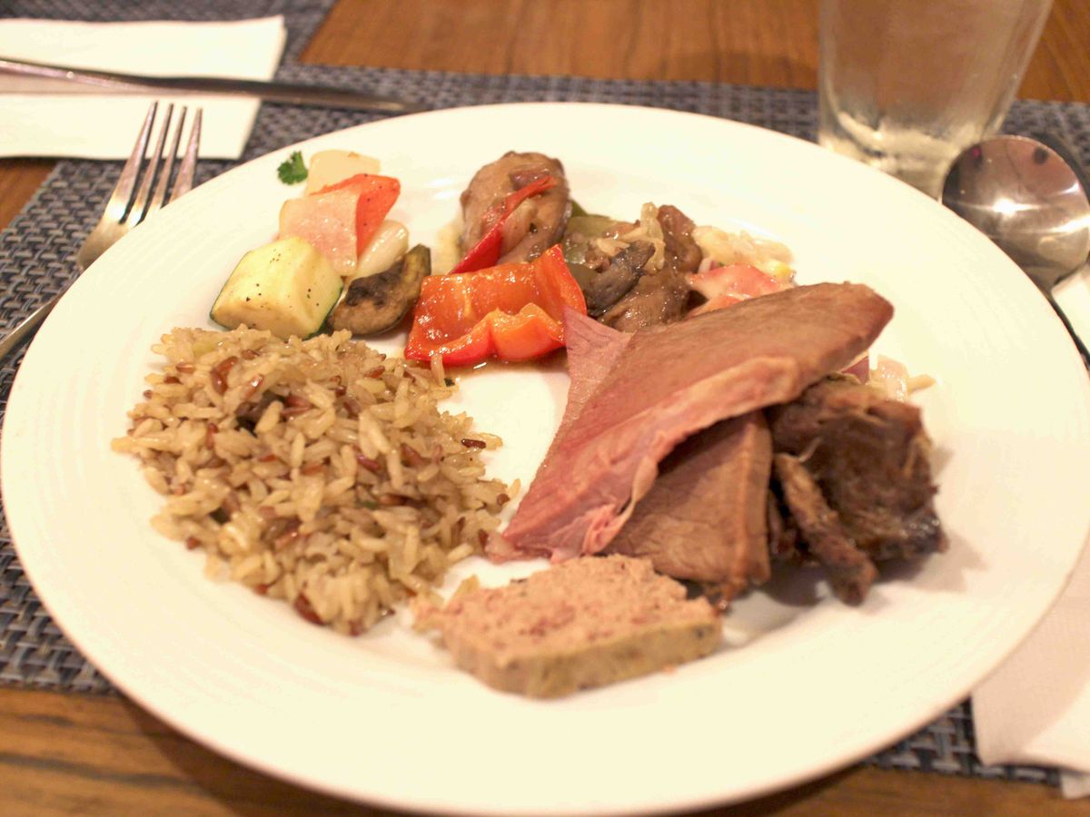 色々食事のコースはありますが、ミートコースを選んでいます。サラダなどはビュッフェスタイルで好きなだけ食べることができます。ミートもビーフ、ポーク、チキンとボリューム満点です。