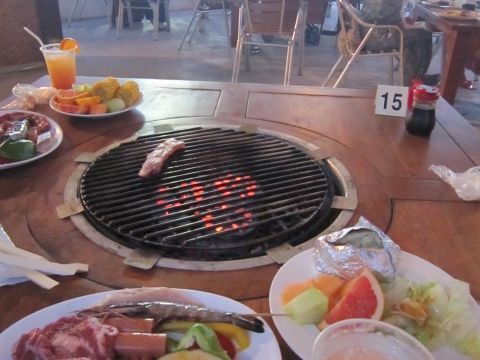 レストランに行くとすぐに席に案内され、すでにBBQのセッティングがしてありいつでも始められるようになっていました。私たちはあまりアルコールが得意ではなかったのですが、ビールの飲み放題で飲む人たちにはお得だと思います。