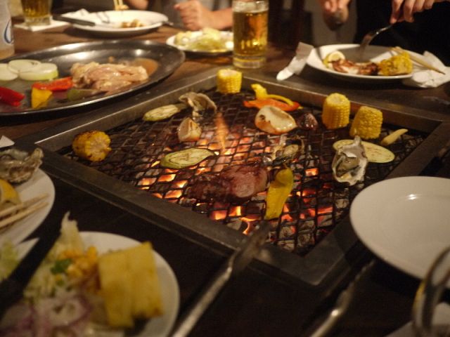 6時半に到着し、ちょうど日がくれるところだったので、写真をとった後、バーベキューを頂きました。お肉の量がたくさんで、おかわりは出来ませんでしたが、おいしかったです。ビールを飲みながらのバーベキューはおいしいですね。
