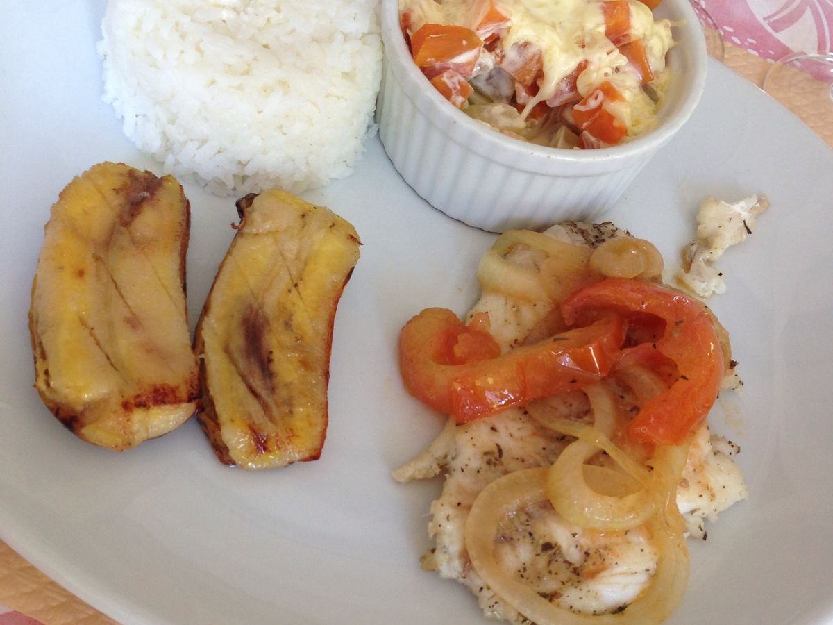 用意されていた昼食は、エビの前菜サラダ・塩味ライスやお魚・ココット・焼きバナナなどでした。手作りのお菓子と紅茶も頂きました。島の民宿での食事なので、とてものんびりした空間でした。