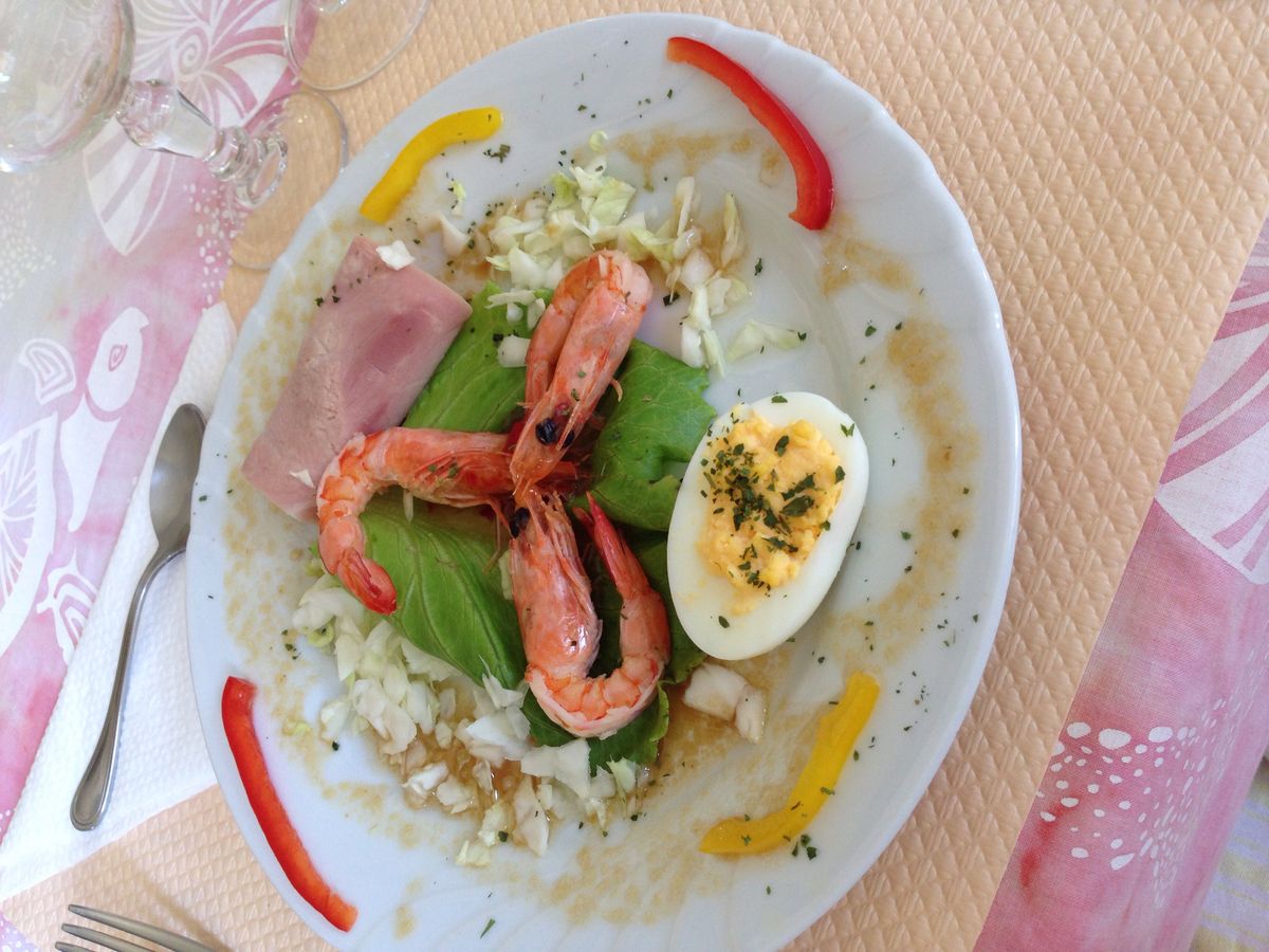 ランチにはエビが出ましたし、その後、海にも入りました。