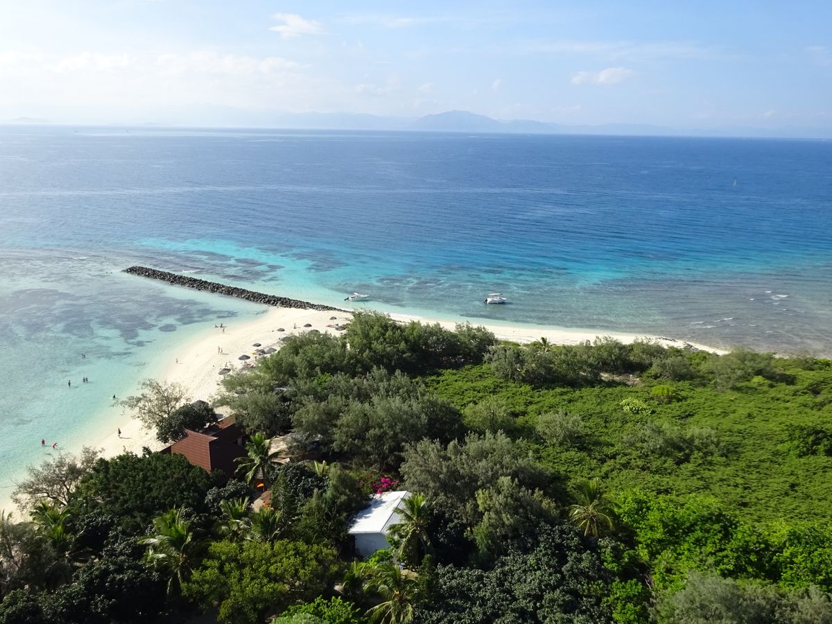 また、灯台は螺旋階段を登って行き、結構しんどいのですが、灯台からの景色はとても格別です。アメデ島を360度見渡すことができ、コーラルと海の青さのコラボがとてもよく、登った甲斐がありました。