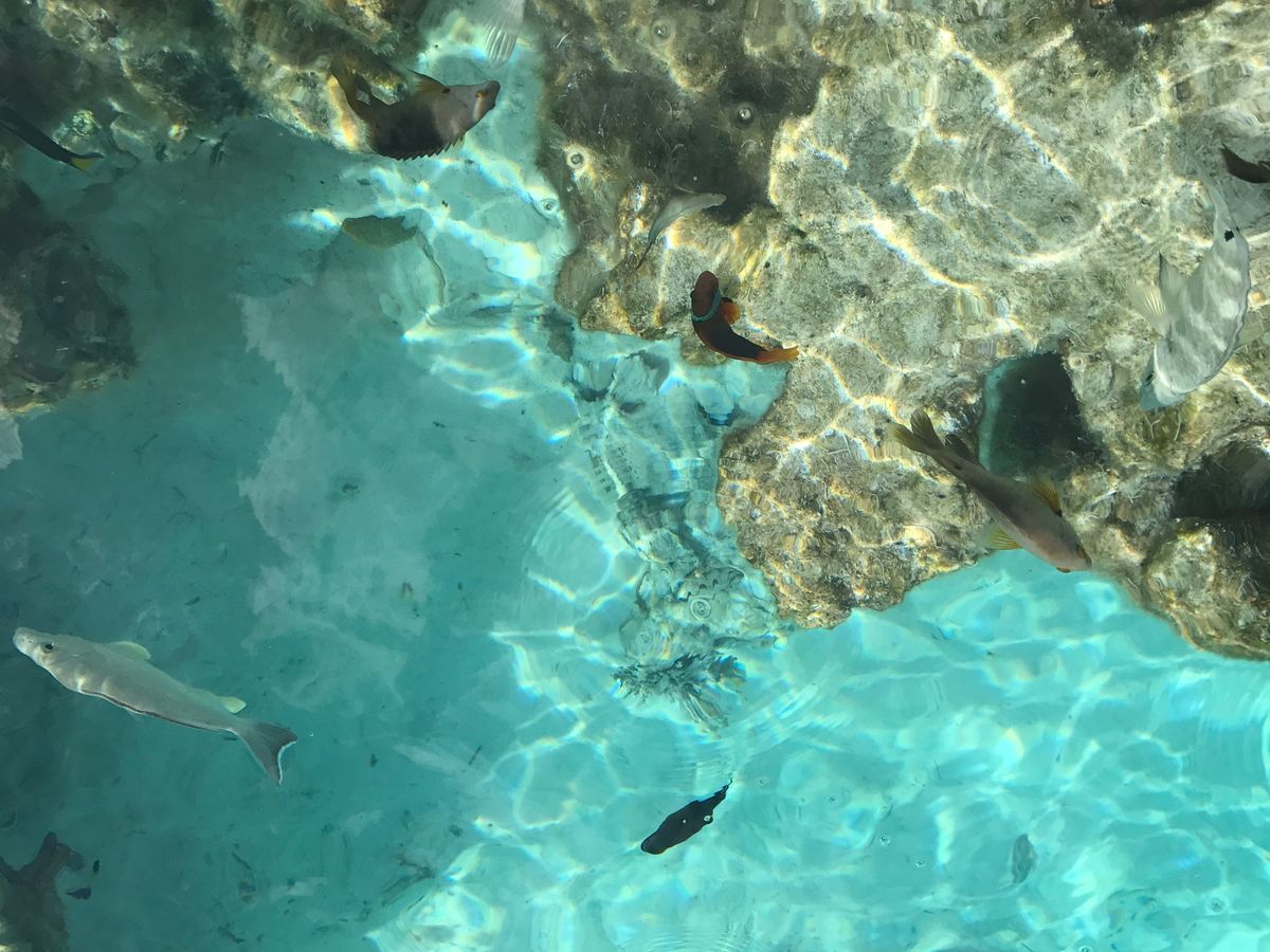 シュノーケルもばっちり持っていきましたが、なくてもパンがあれば、たくさんさかなが寄ってきます。きれいで感動しました。食事もおいしかったですが、ごはんがまずかった。