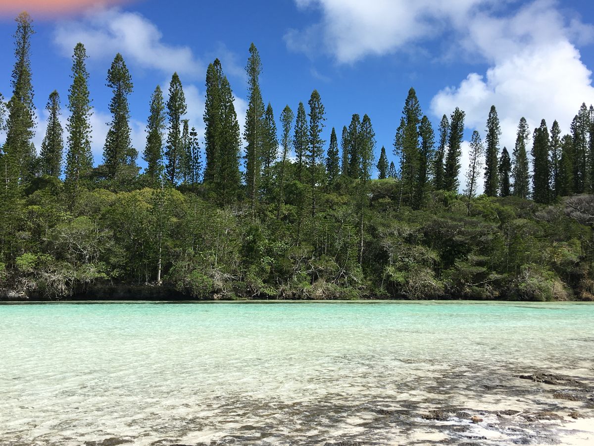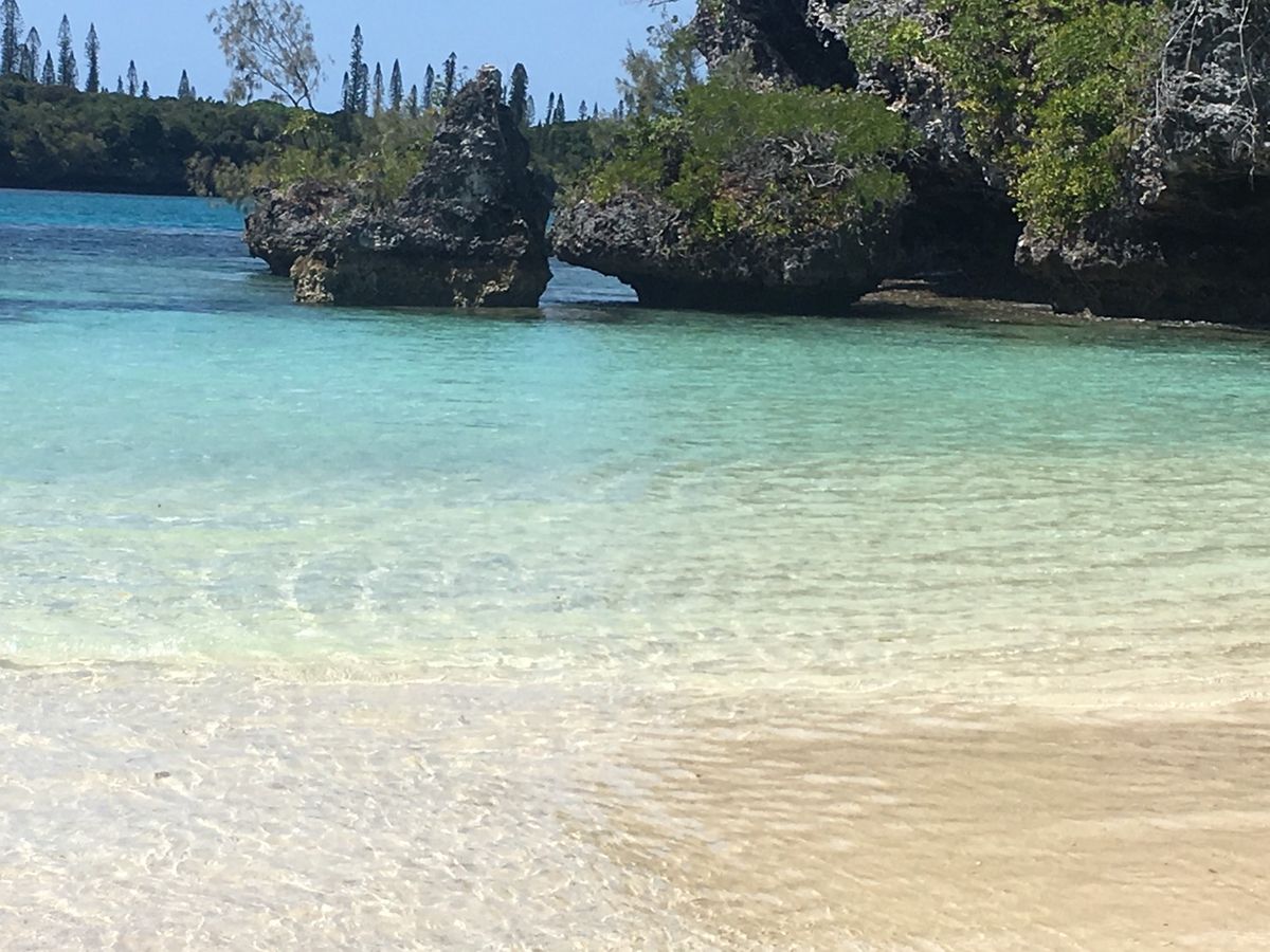 1ヶ月以上前に予約を入れ、一日観光に参加しました。天気にも恵まれクトビーチで一休みし、カヌメラビーチでスノーケリング。透明度の高い浅瀬にもこんなにたくさんの魚たちが集まるのかと驚きと感動のひとときでした。夢中になり体が少し冷えるためアンダーの上下は必須です。その後レストランで昼食とワインをいただき、自慢のエスカルゴをオーダーしました。やはりこれぞイルデパンの実感です。そして、憧れのピッシンヌナチュレルに向かい、バスを降り森林を抜けると、そこには想像以上のナンヨウズギに囲まれた美しい海の絶景に言葉を失いました。
