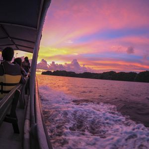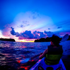 ガイドさんは程よく距離を取ってくれる方で、とてもよかったです。陸地でカヌーの漕ぎ方など丁寧に説明頂き、桟橋からカヤックに乗り込み、練習しながらサンセットを見ます。参加した日は天候も良く、丸い太陽がくっきり見えました!サンセットの時間は特に離れたところにいてくれたので、プライベートの時間をゆったり過ごせました。その後、止まってる船でお弁当頂きながら、満点の星空に感動しました!夜のシュノーケリングにちょっと不安を感じてましたが、とても楽しかったです。動く度に夜光虫が光り、頭上では満点の星空が輝き、どこを見てもキラキラしてました。シュノーケリングが終わった後に温かいお茶を頂いたのも、真心を感じ、身体も心も温まりました。次の日に筋肉痛になりましたが、また参加したいです。