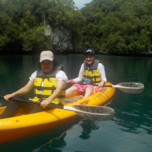 娘に勧められて初めてカヤックを体験しました。天気も良くて景色最高でした。心地よい風を感じながらロックアイランドの自然を満喫しました。午後は二ヶ所のシュノーケルポイントに案内して頂きました。透明度抜群の海域でサンゴや魚たちとのシュノーケルを存分に楽しむことが出来ました。クマノミなど熱帯魚観察最高でした!ガイドさんたちは親切で優しくて パラオの話をたくさんしてくれました。とても楽しかった。また是非参加したいツアーです。