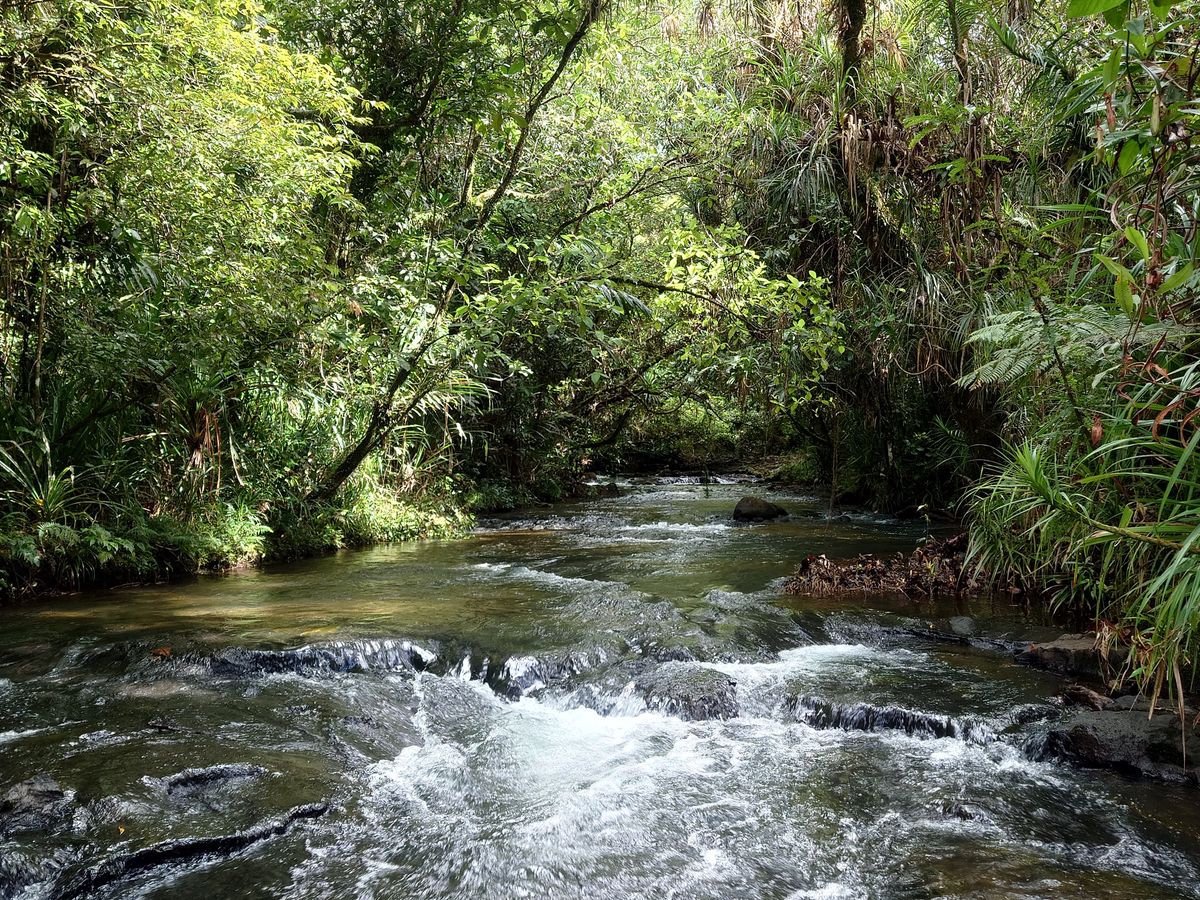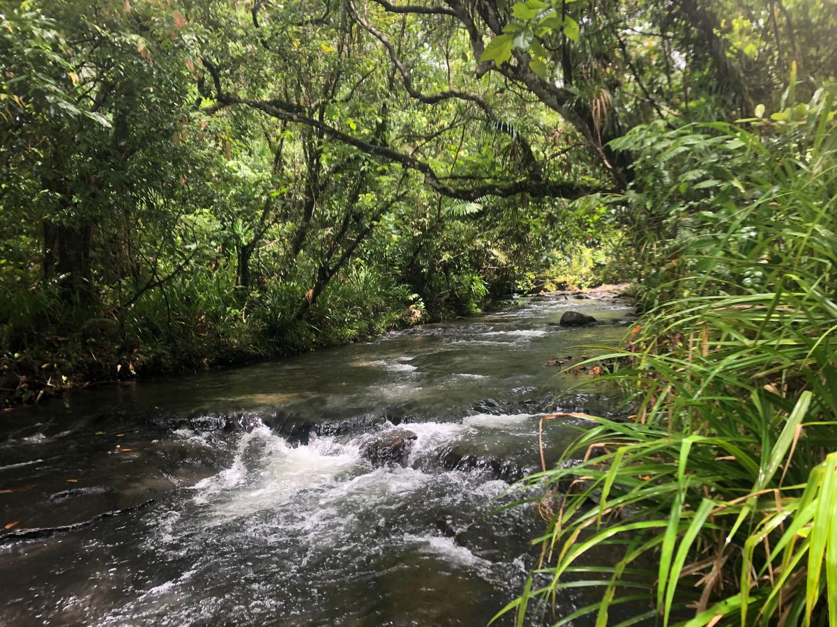 川べりを歩いて、途中1メートルくらいの小さな滝(?)とそこにできた滝壺で胸あたりまで使って遊ぶこともできました。