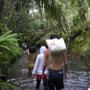 ホテルでピックアップ後マイクロバスで果樹園に行きました。生憎の雨のためパラオの果物を色々実物をみながら説明を受けました。ノニのジュースを少し試飲しましたが、とてもすっぱかたです。それから、ガラスマオの滝に向かいました。駐車場より15分位山道を登ると丘の上にはケーブル滑車があり有料で体験できます。また20分位山道を下り、川沿いを歩いて滝に到着。昼食の弁当を食べて滝に行きました。滝に打たれたり通り抜けたりとても楽しく過ごしました。