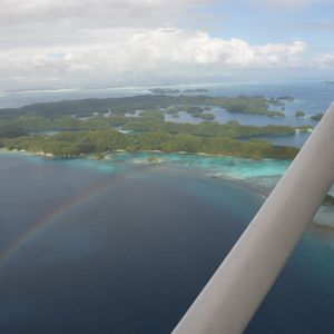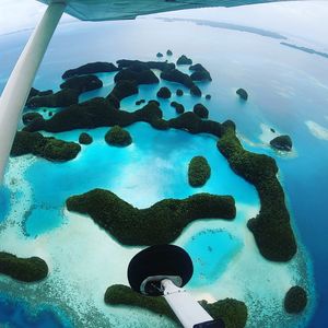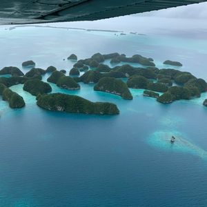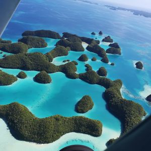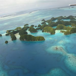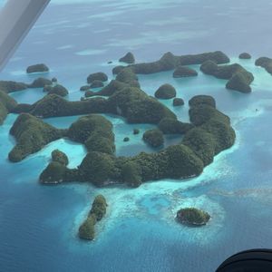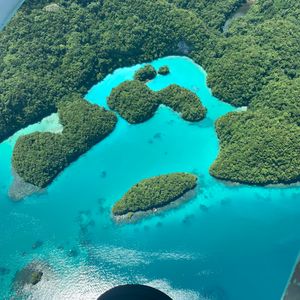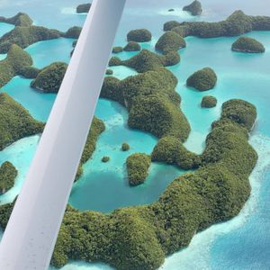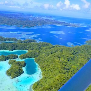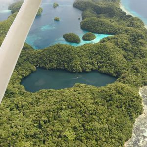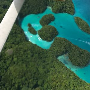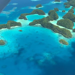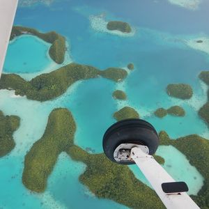 最高でした。乗ってよかったです。上から見たパラオは最高以外の何ものでもありません。こんなにもいろいろな海の青さがあるとは。自分たちが行ったところを上から見られるのもいいですが、現在上陸出来ないセブンティーアイランドを上から眺められたのは感動的でした。青い海にポコポコとした緑に覆われた島が浮かび、それを見られて大興奮でした。