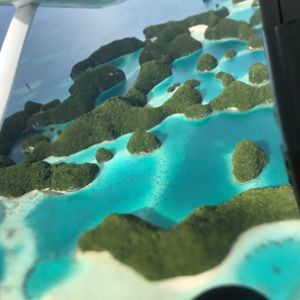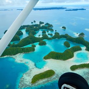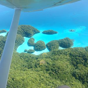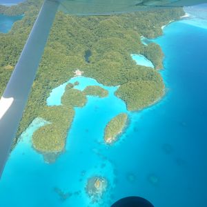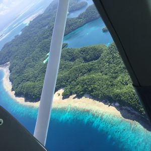 海中と陸のパラオの締めくくりに、空から見るパラオを加えることで旅の印象がより濃いものになりました。飛行時間の直前まで雨模様でちょっと心配していたのですが、飛行時間の直前から青空が見えてきて、飛行中に虹も見れました。やはり可能であれば窓がないほうがよりきれいに見えておすすめです。外国人パイロットさんもイケメンで安心感のある操縦でした。スタッフのみなさんもとてもフレンドリーで感じのいい方々でした。撮った写真は一生の宝物になりそうです。超オススメです!
