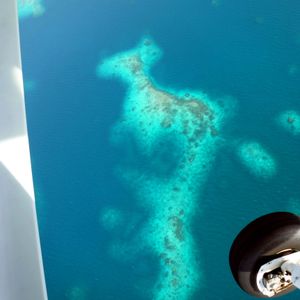 美しい海と珊瑚、変わっていく海の色を空から眺めると本当に美しかったです。