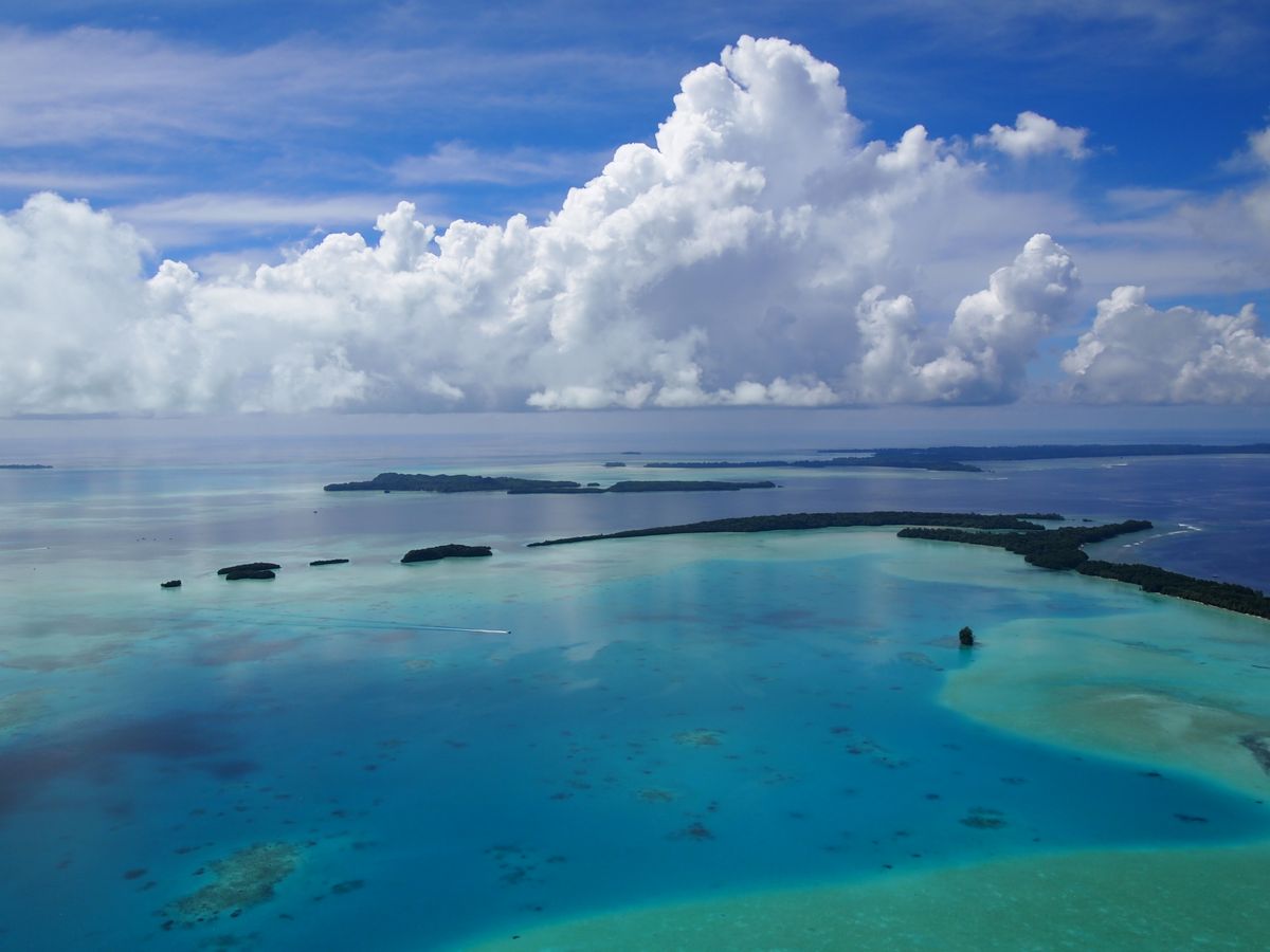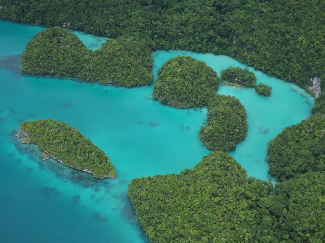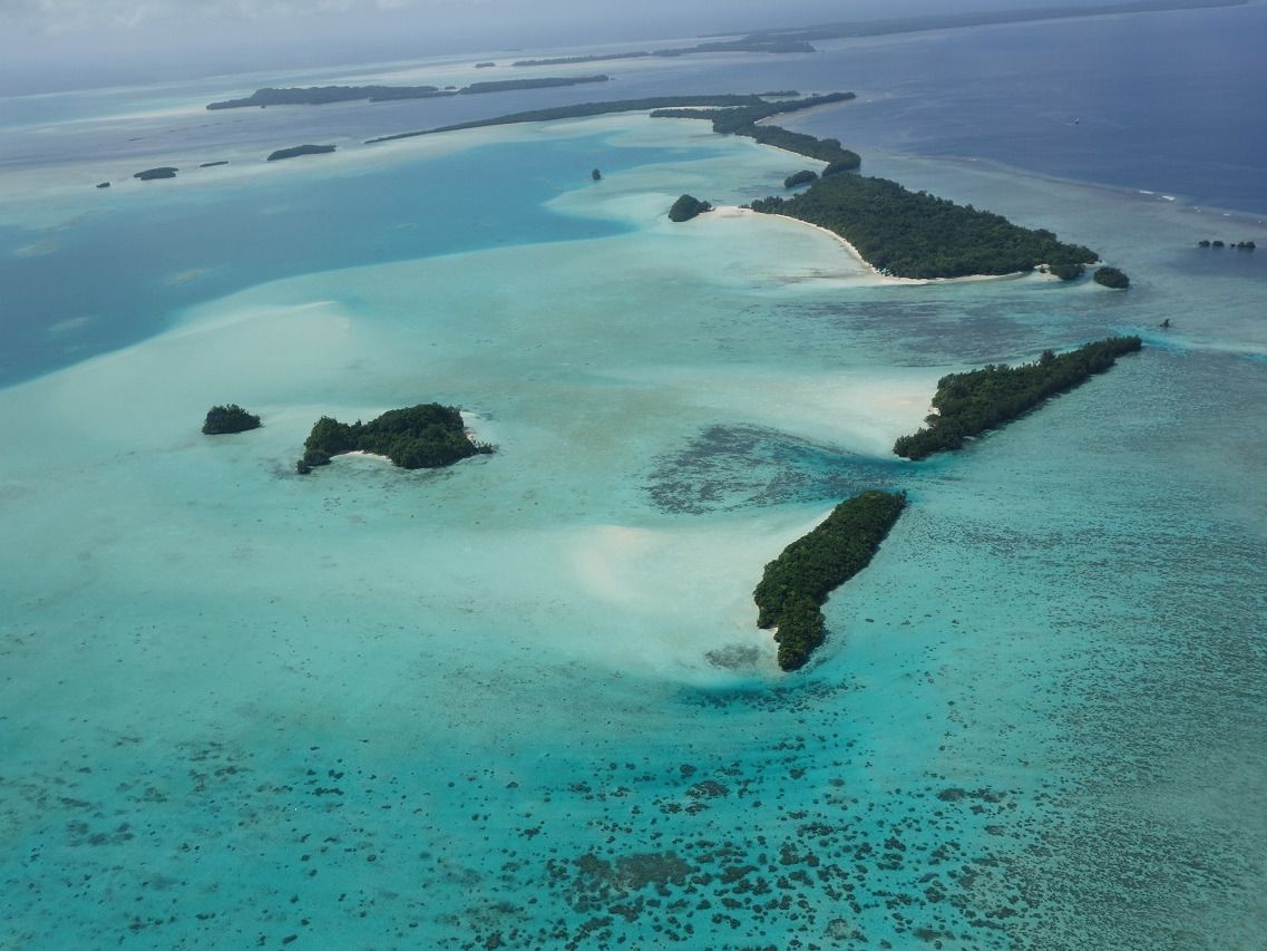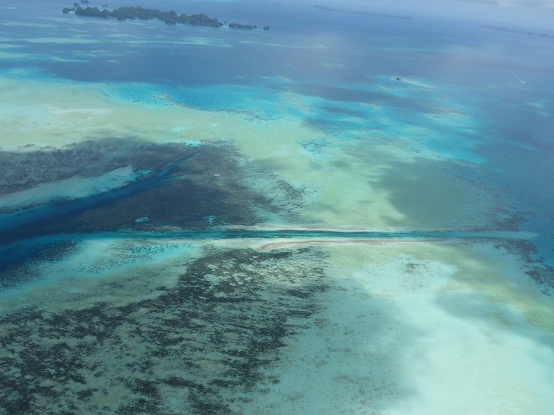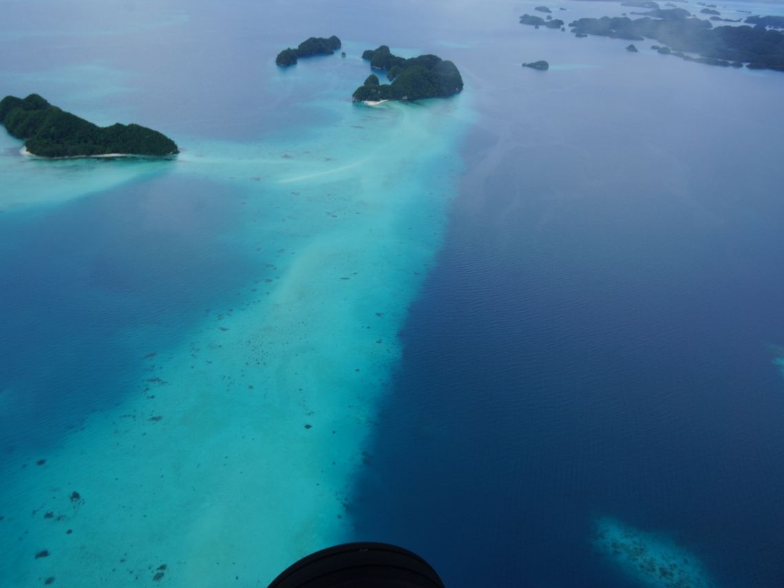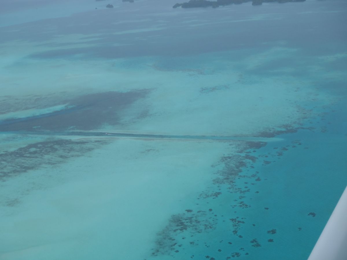 パラオの海のきれいさはマリンアクティビティから実感していましたが、上空からみるとさらに