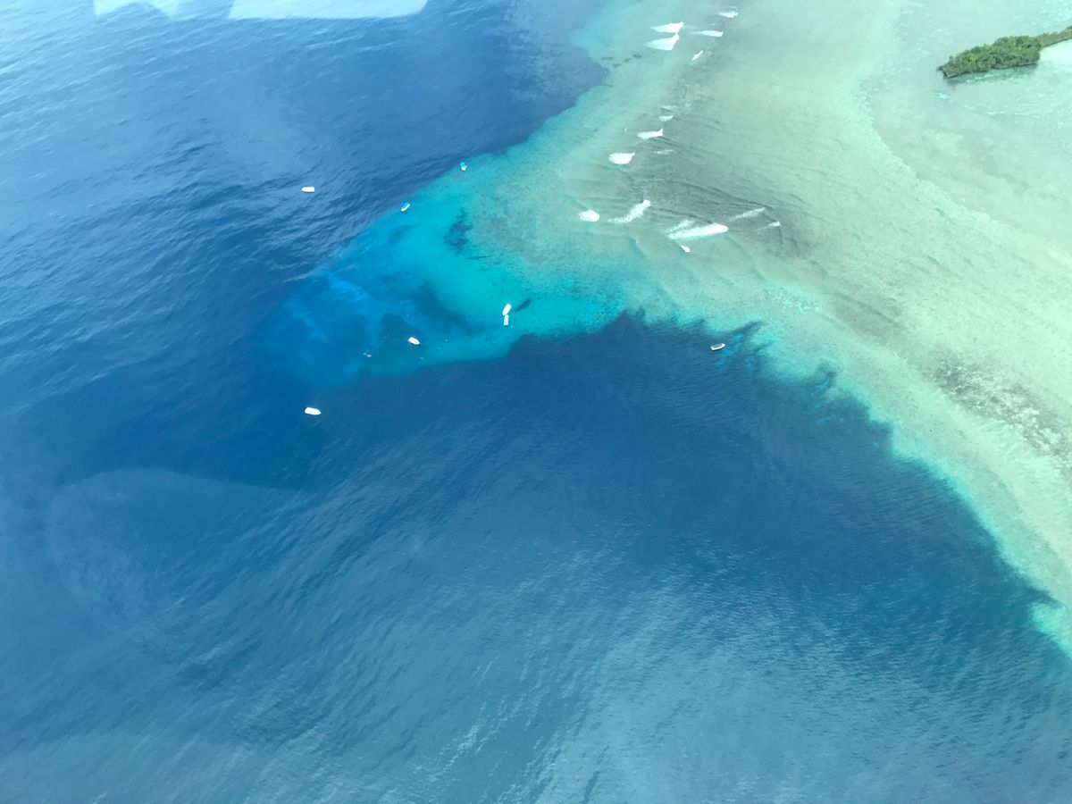 前日、アイランドホッピングをして、ミルキーウェイに行ったりシュノーケリングをしたりしたポイントを空から眺めるのは、本当に楽しかったです。
