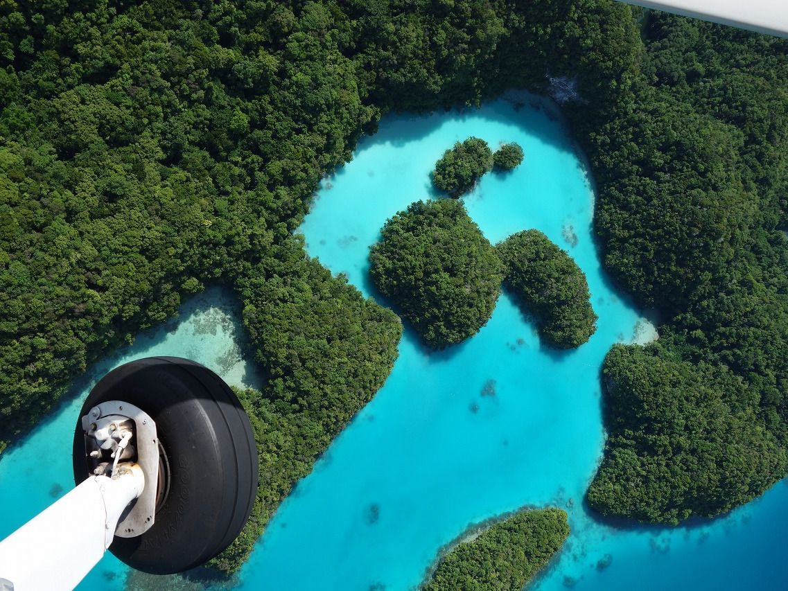 パラオに行くとたくさんの現地ツアーがありますが、空からの絶景が体験できるツアーはこれだけです。