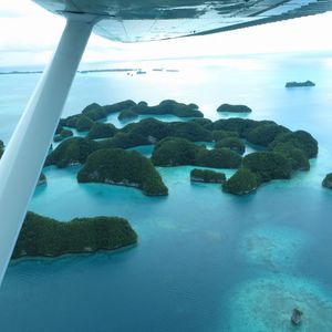 パラオ到着日に搭乗ました。空から眺めるパラオの島々と海の美しさは素晴らしいものでした。まず空からパラオを俯瞰的に観察して、いろいろなツアーに参加するのも良いと思います。