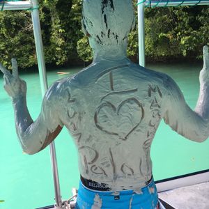 3度目のパラオで3度目のミルキーウェイでした。いついってもキレイな海と楽しい泥んこ遊び。すっかり童心に戻れます。泥は少しだけミネラル臭いですが天然の証拠(笑)今回、私と私の友人の男子2名、そして日本人の若い女の子たち3人と現地ガイド男性1名、船の運転手の男性1名の計7名が同船。現地ガイドはミルキーウェイに到着後、海底からすくってきた泥を女の子たちに塗ってあげていました。彼自身が先にデモンストレーションとして顔や全身に泥パックをしていたので顔の表情はわかりませんでしたが、彼は絶対にエッチな気持ちでやっていたと思います(笑)もちろん私と私の友人は男同士で泥を塗り合ったのですが、現地ガイドの彼が羨ましかったのは言うまでもありませんw