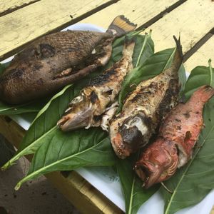 カヤンゲル島までの距離はありますが、途中の自然保護区でのシュノーケルはまるで竜宮城!透明度も良くサンゴもきれいだし、魚の種類も豊富で今回もナポレオンフィッシュに出会えました❤︎その後、ボートから手釣りにチャレンジ。お魚が釣れないとランチが寂しくなるのでみんな意外と必死です(笑)。今回は4匹と不漁でしたが、場所を2回も変えてくださって十分、楽しむ事ができました。