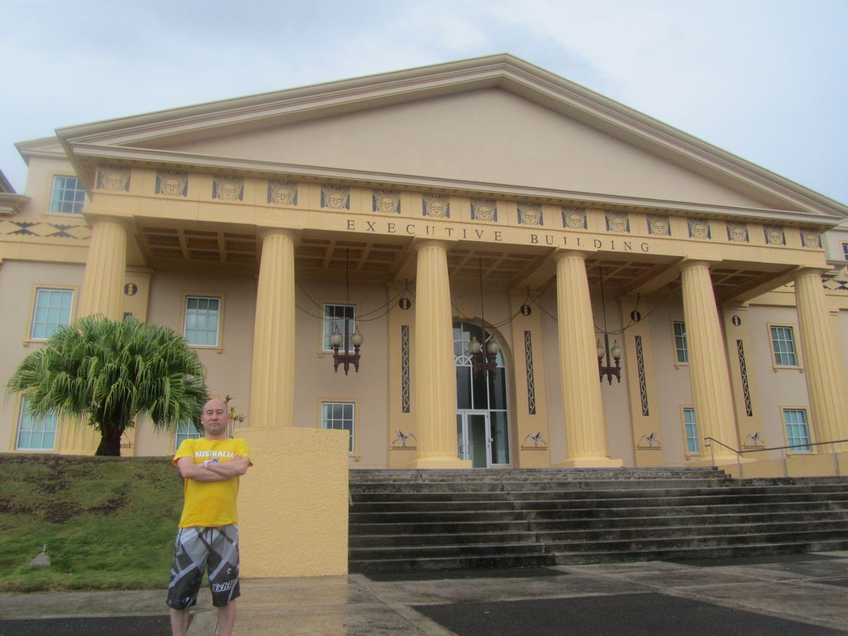 宿泊先のホテルでの受け渡しで、楽でした。車の調子は良く、至る所を走り回り、大いに活用しました。写真にやや小さく写っているのが借りた車です。なお、パラオは、舗装していない道も多く、場所によっては車で入り込んでぬかるみで出られなくなるような事態もあり得ますので、運転には注意が必要です。道が悪く、自分では普通に走っているつもりでも、思わぬ損傷もあり得るという印象で、自分も入りましたが、車両保険は入っておくのが無難です。