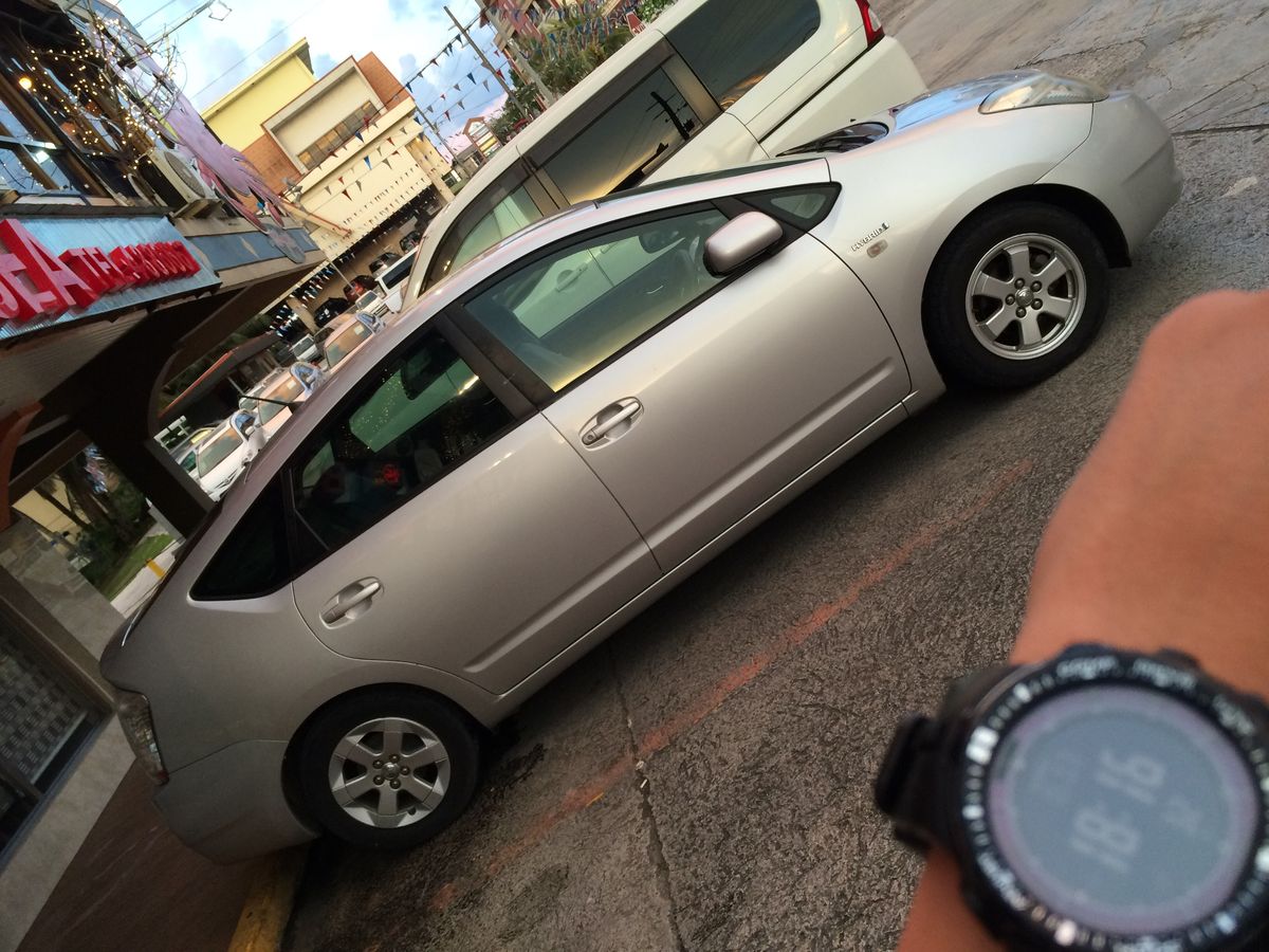 駐車場に置いてから、レンタカー屋さんのスタッフが取りに来るまでの間に駐車場でぶつけられた場合が気になり、念のため駐車場で時計入れて写真を撮りました。