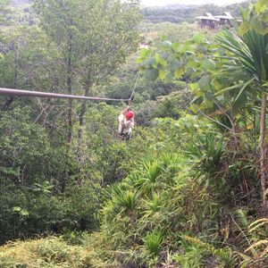 運動不足なので体力が心配でしたが、天気が曇りだった事もあり、結構私は平気でしたが、主人は途中疲れたと言ってました。別料金でジップラインとトロッコのお誘いを頂きましたが、私たちは、ジップラインのみの参加としました。高所恐怖症なので、出来るかどうか心配でしたが、とても楽しかったです。戻ってくる時に途中で止まってしまって、インストラクターの方に迎えに来てもらいました。