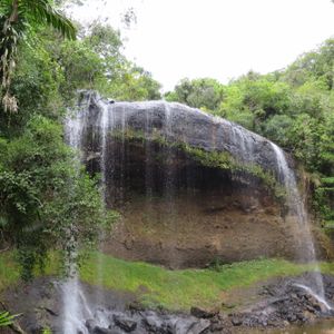 舐めてました、スコール・・・ 5分くらいでやむかと思ったら30分くらいざーざーぶり。お蔭で滝の水かさが増して良かったですが。。。ターザンのような縄渡りは、雨でも中止にならず良かったです。最後は眼も開けていられないくらいザーザー降りでしたが、これはこれでいい思い出です。防水カメラ必須!!やねん。あ、お昼はハンバーグでした。パラオのツアーで珍しく和食弁当でないのがよかったです。美味しかった☆☆☆