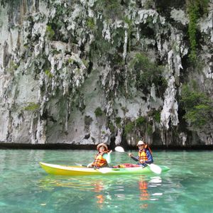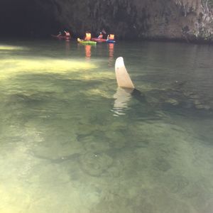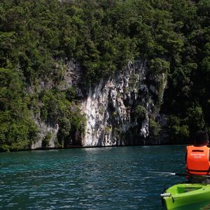 カヤックは、水面に近い目線で楽しむことができますし、島(岩?)にも触れる距離で近づくことができました。また、オールを漕ぐ水音、鳥の鳴き声など、自然の音だけの世界も最高でした。
