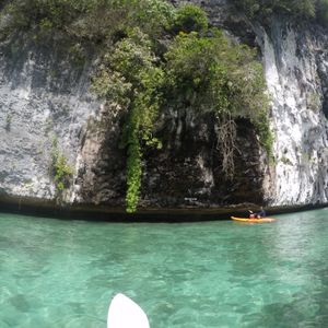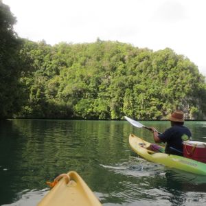午前は日本人スタッフさんとカヤックに乗って様々なスポットを巡りました。おしゃべり上手ななスタッフさんでいろいろなパラオの事が聞けていろんな質問にも答えてくれて話も面白かったです!私達二人だけの予約だったみたいで贅沢にガイドを独り占め。洞窟はタイミングが合わないと青色が綺麗にみれないとのことですが、私達の時はまあまあ?な具合だったようです。光と水面の具合だそう。天気良かったのでカヤックで行く所々は、誰もいない海に私達だけ浮かんで気持ちがいい!戦争の飛行機なども間近で見ました。ゾクゾクしました。昼からは離島に着いて昼食してからまたカヤックで海を散歩。カメが沢山いるゾーンに行きました。何匹か見れました。カヤックに私達二人が乗って、一生懸命漕がないと進まないし、スタッフさんは近くにいるもののバランスくずれるとひっくり返るし、命綱はライフジャケットのみ!泳ぐの苦手な方はスリリングかも?でも海上を存分に味わえるアクティビティだと思います。後半の外国人スタッフさんも優しくゆっくり英語で説明してくれました。総合的にとても親切なツアー会社でした。