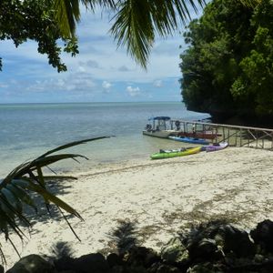 何もないのでヒマといえばヒマ。パラオでは貴重な砂浜なので貝拾いとか波打ち際でのんびりするにはいいですね。