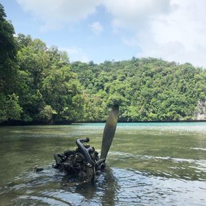 湖に到着するとライフジャケットとシュノーケル一式を付けて湖に入ります。クラゲは日が当たる場所にいるので、入水場所から10分から15分くらい湖の中を泳ぎます。到着まで何匹かのクラゲと出会うことがありますが、無数にいる場所に到着するまでは見ない方が感動が違います。