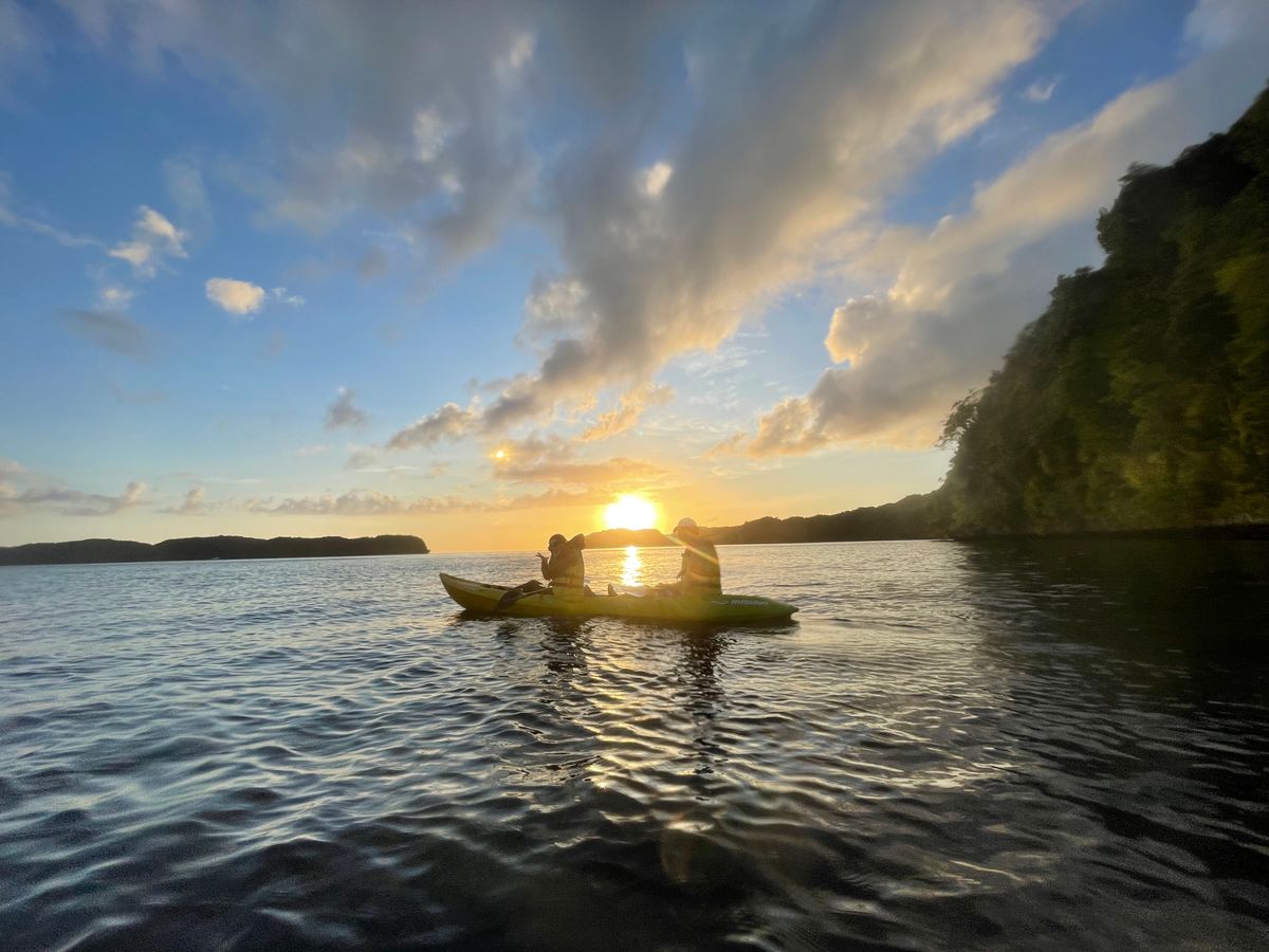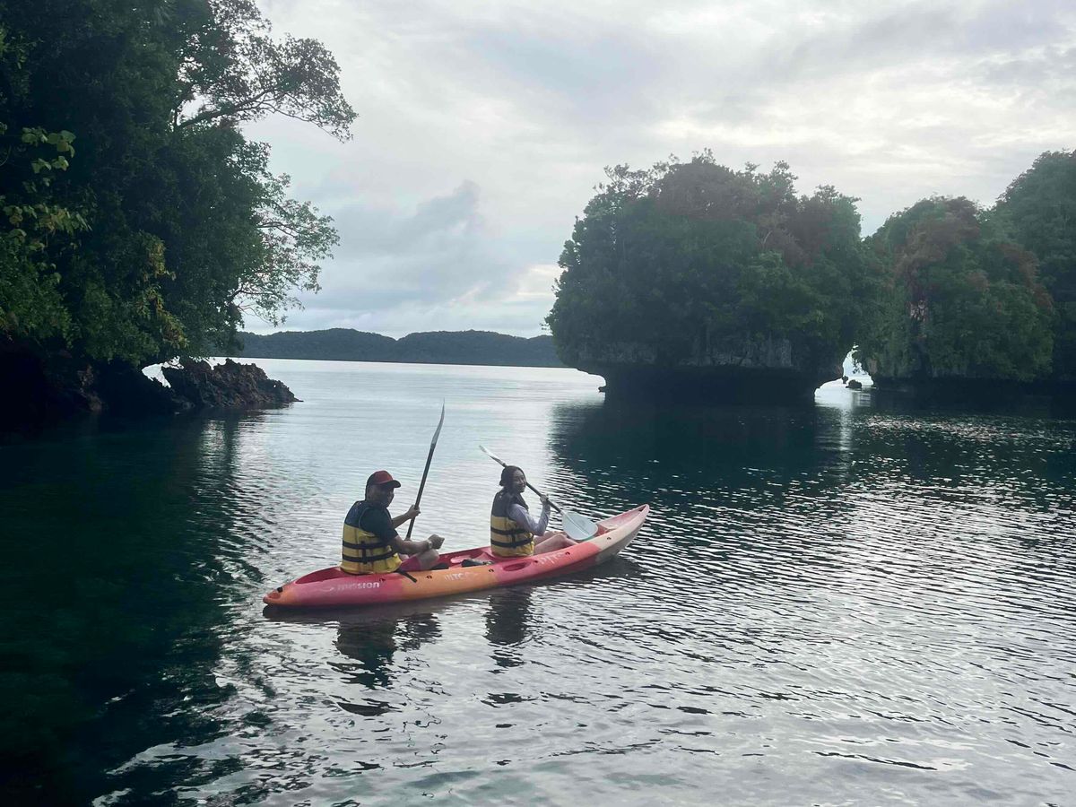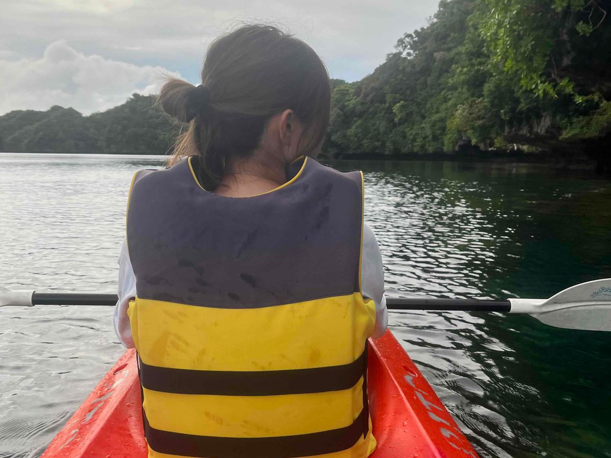 パラオでのカヤックツアーに参加しました。ガイドさんの丁寧な説明のおかげで、最初からうまく二人で力を合わせながら漕ぐことができ、楽しめました。