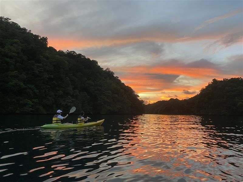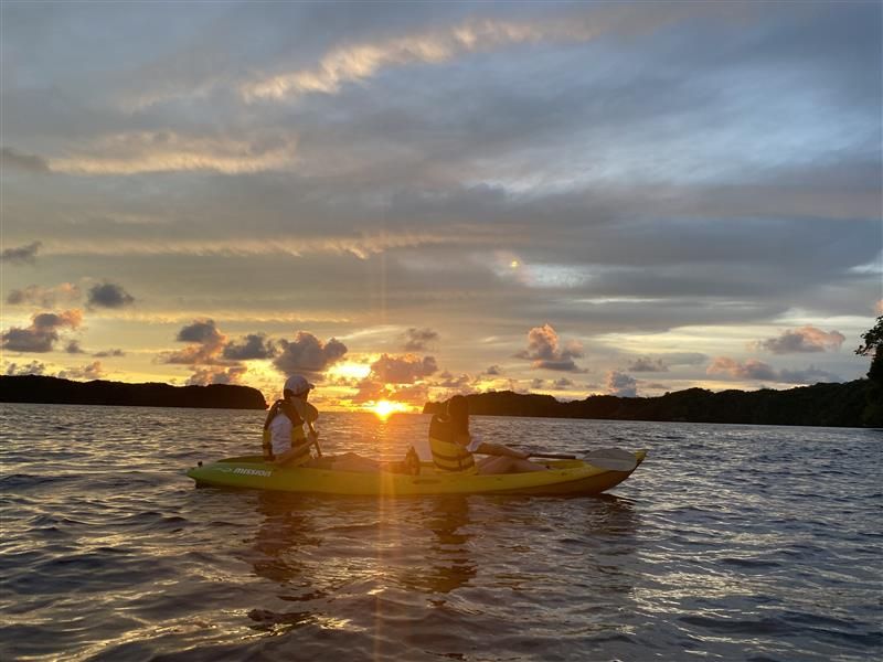 ガイドさんは程よく距離を取ってくれる方で、とてもよかったです。陸地でカヌーの漕ぎ方など丁寧に説明頂き、桟橋からカヤックに乗り込み、練習しながらサンセットを見ます。参加した日は天候も良く、丸い太陽がくっきり見えました!サンセットの時間は特に離れたところにいてくれたので、プライベートの時間をゆったり過ごせました。その後、止まってる船でお弁当頂きながら、満点の星空に感動しました!夜のシュノーケリングにちょっと不安を感じてましたが、とても楽しかったです。動く度に夜光虫が光り、頭上では満点の星空が輝き、どこを見てもキラキラしてました。シュノーケリングが終わった後に温かいお茶を頂いたのも、真心を感じ、身体も心も温まりました。次の日に筋肉痛になりましたが、また参加したいです。