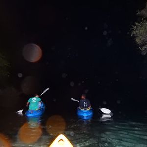 カヤックに乗るのも初めてで最初は苦戦しましたがすぐに慣れる+付き添いのスタッフさんがしっかり見ていてくれるので暗い帰り道でも安心でした。